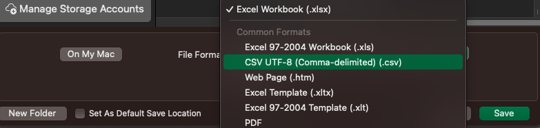 - CSVs should use the .csv file extension format. Other spreadsheet file formats such as .numbers or .xls will not work.