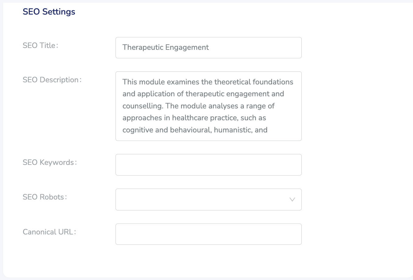Click Edit settings and scroll down to Metadata. Here you can amend the autogenerated content. Scroll back up and click Save to confirm changes.